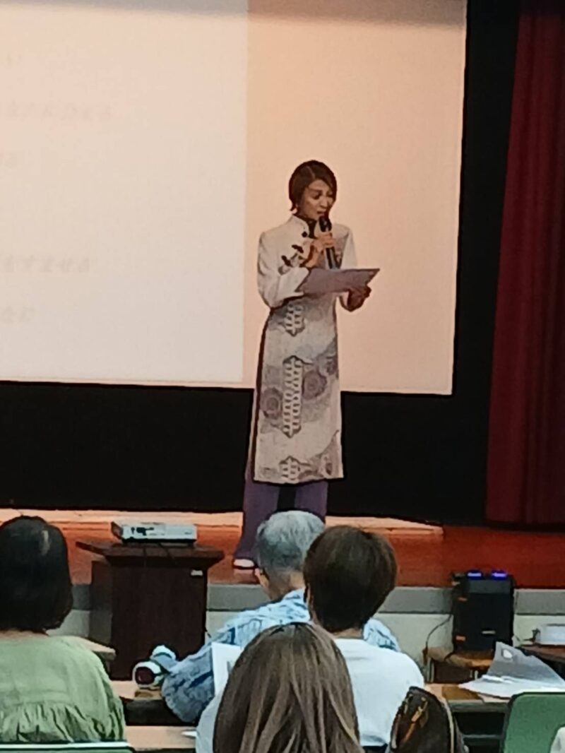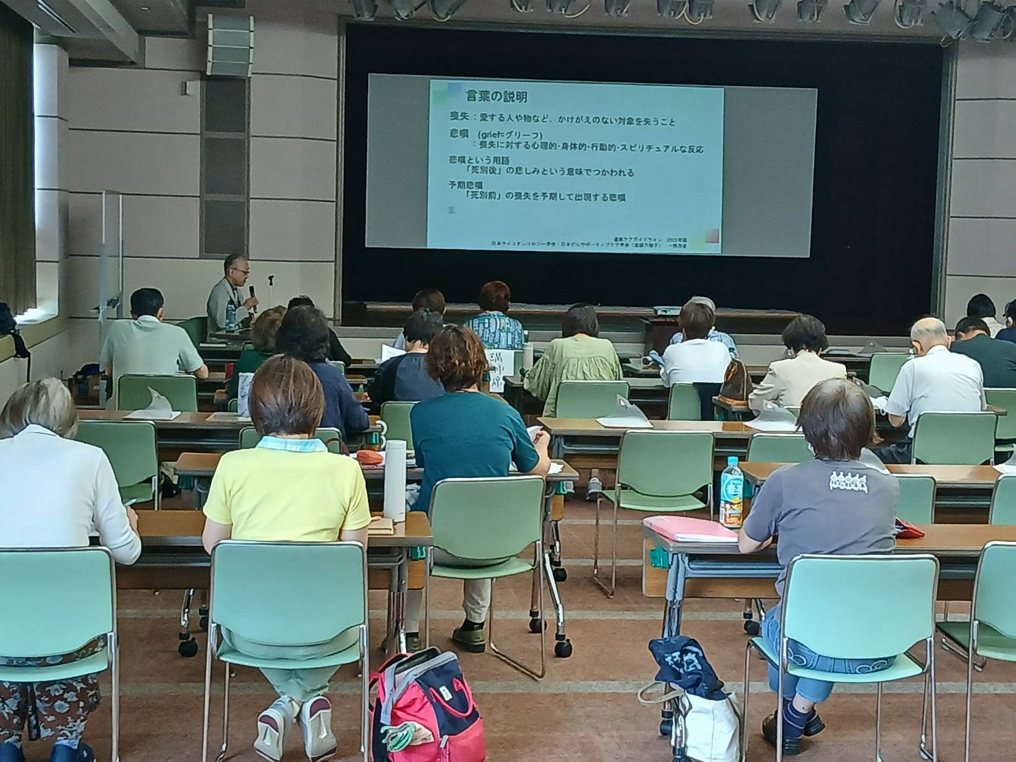 今回の講座内容は、グリーフケアについて(姫路聖マリア病院内科副部長 田村亮氏)と、がん患者家族体験談(かえでホームケアクリニック医師 関本雅子氏)でした。どうしても気持ちが重くなりやすい講座である為、元宝塚歌劇団の千城恵様に「オーシャンゼリゼ」等を歌っていただきました。受講生の方の中には、がん患者さんや遺族さんもおられ「歌のおかげで気持ちがやや重かったのがやわらいだ。」「歌のおかげで雰囲気もかわり気持ちが前向きになれた。」等の感想がよせられました。