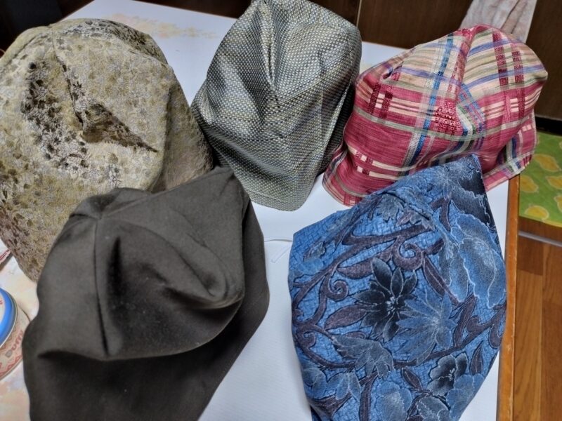 秋~冬柄追加。表生地シルク素材、大島紬の帽子もあるよ。シルク素材は軽くて暖かいです。夜間の就寝時等の便利です。